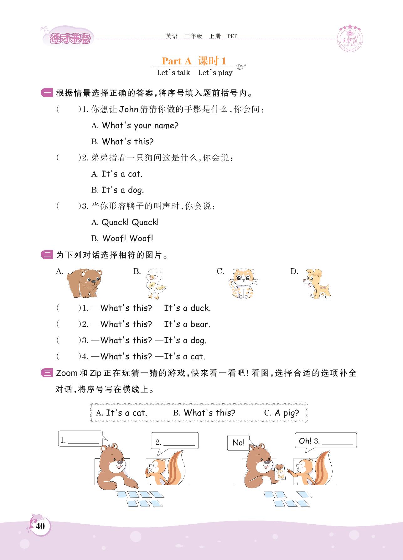 2021上册三年级英语人教PEP版 Unit 4 Part A—课时 1 Let’s talk Let’s play