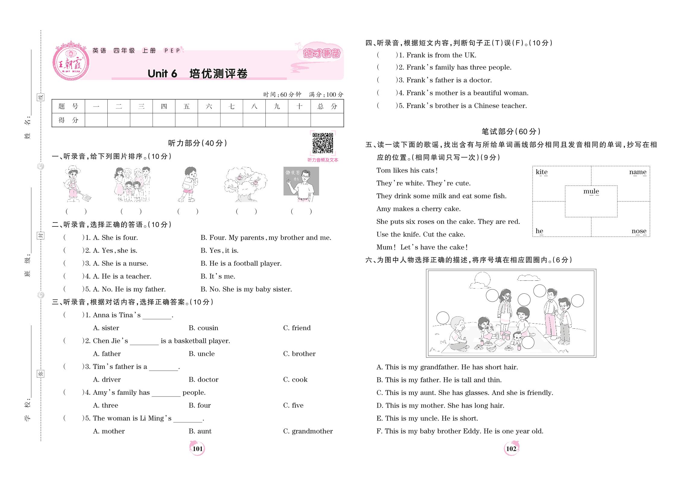 2021上册四年级英语人教PEP版 Unit 6 培优测评卷