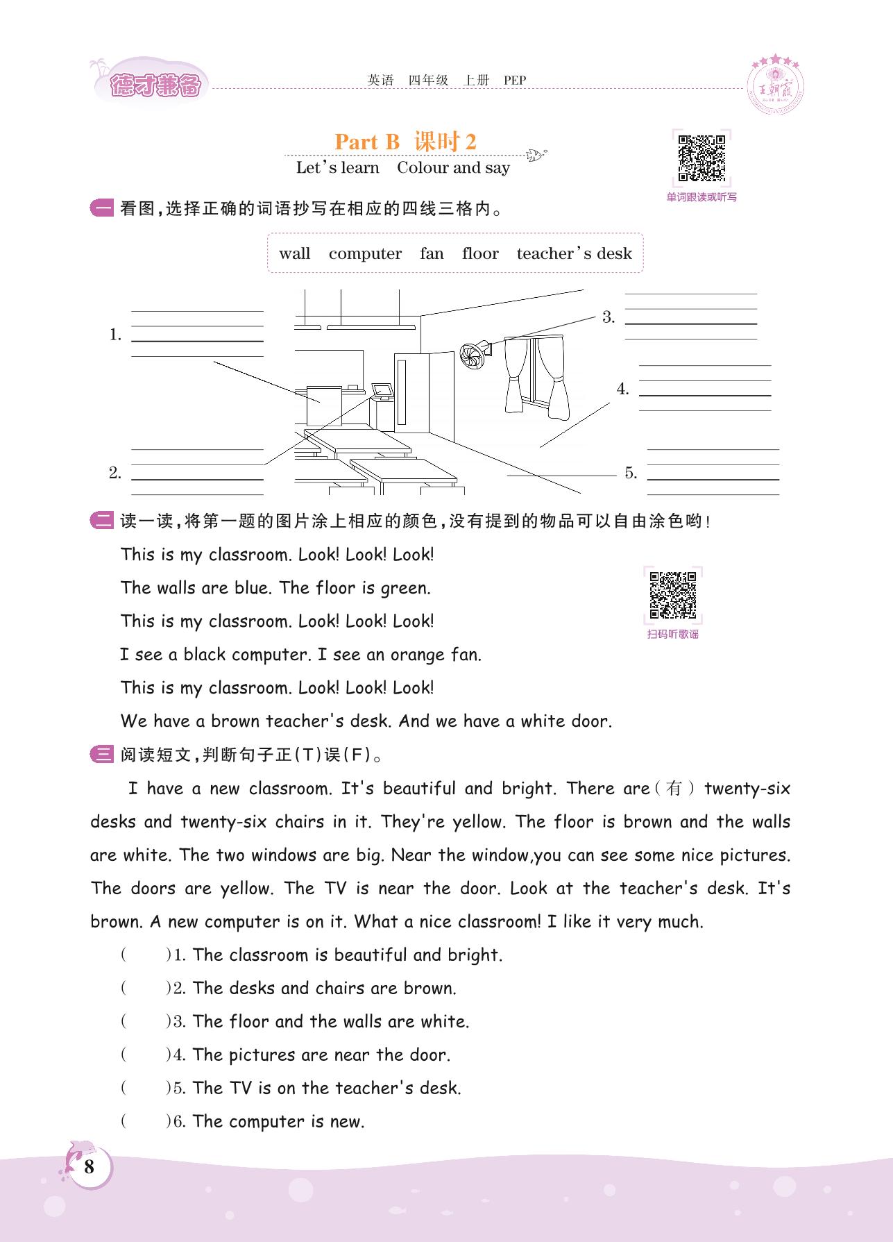 2021上册四年级英语人教PEP版 Unit 1 Part B—课时 2 Let’s learn Colour and say