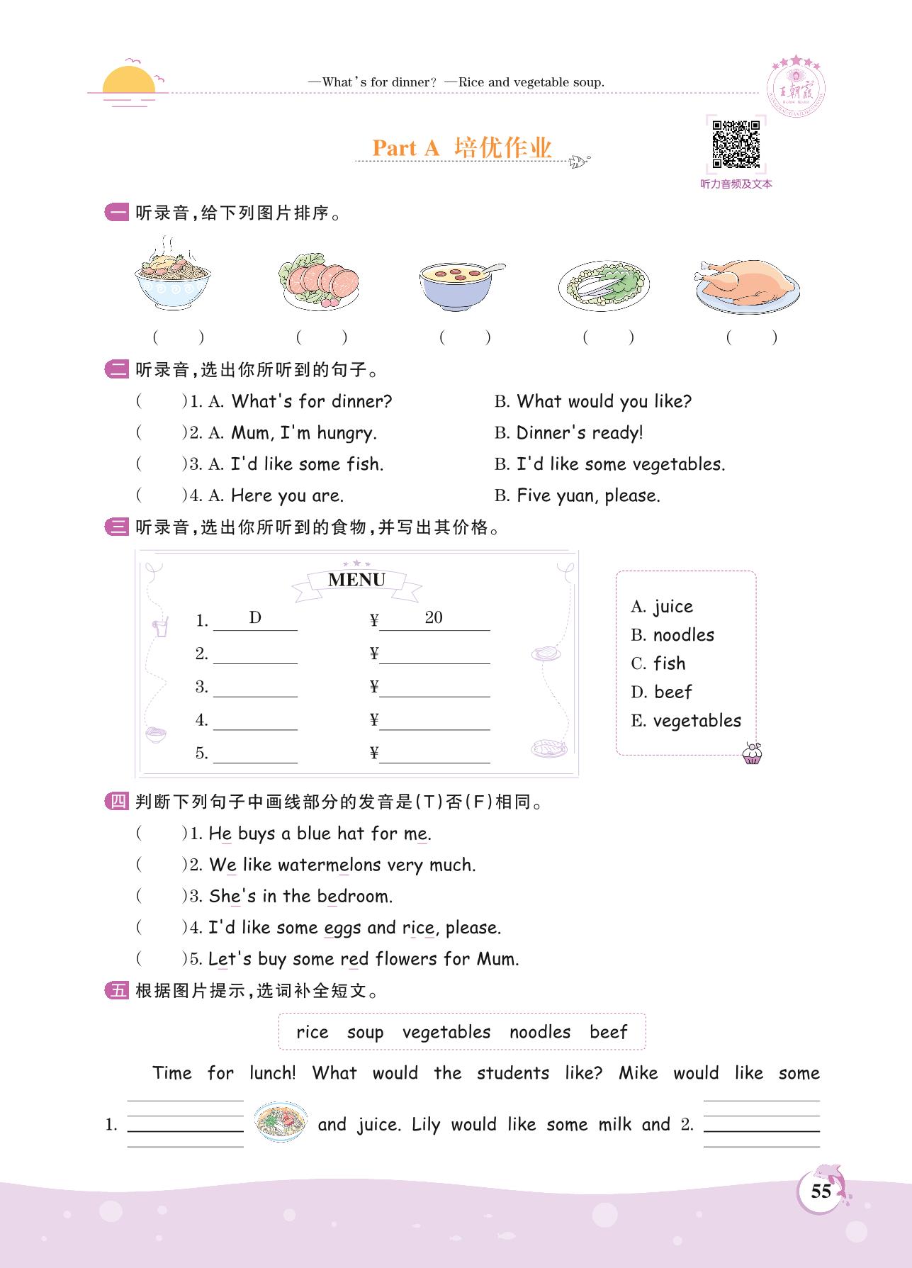 2021上册四年级英语人教PEP版 Unit 5 Part A 培优作业