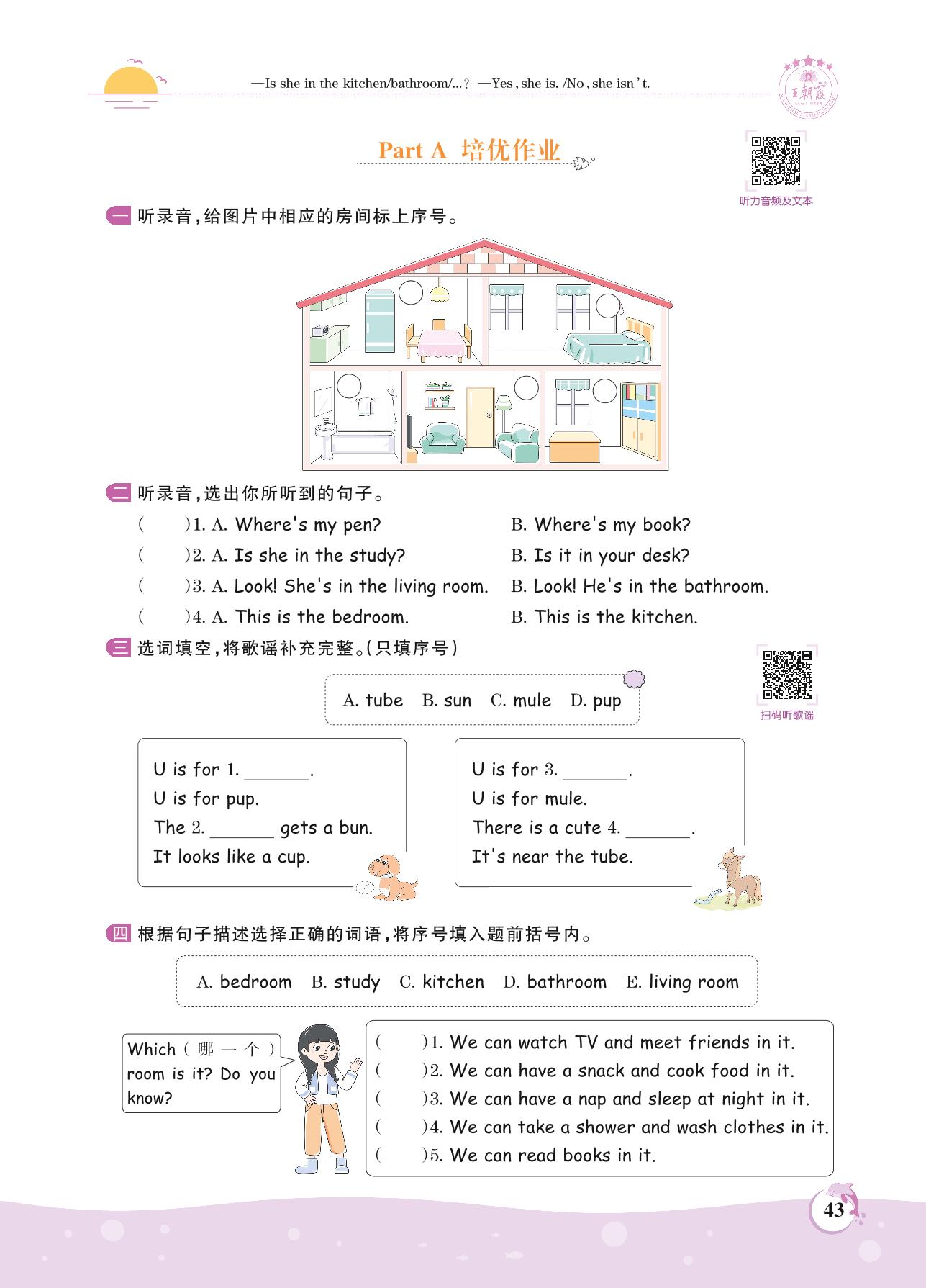 2021上册四年级英语人教PEP版 Unit 4 Part A 培优作业