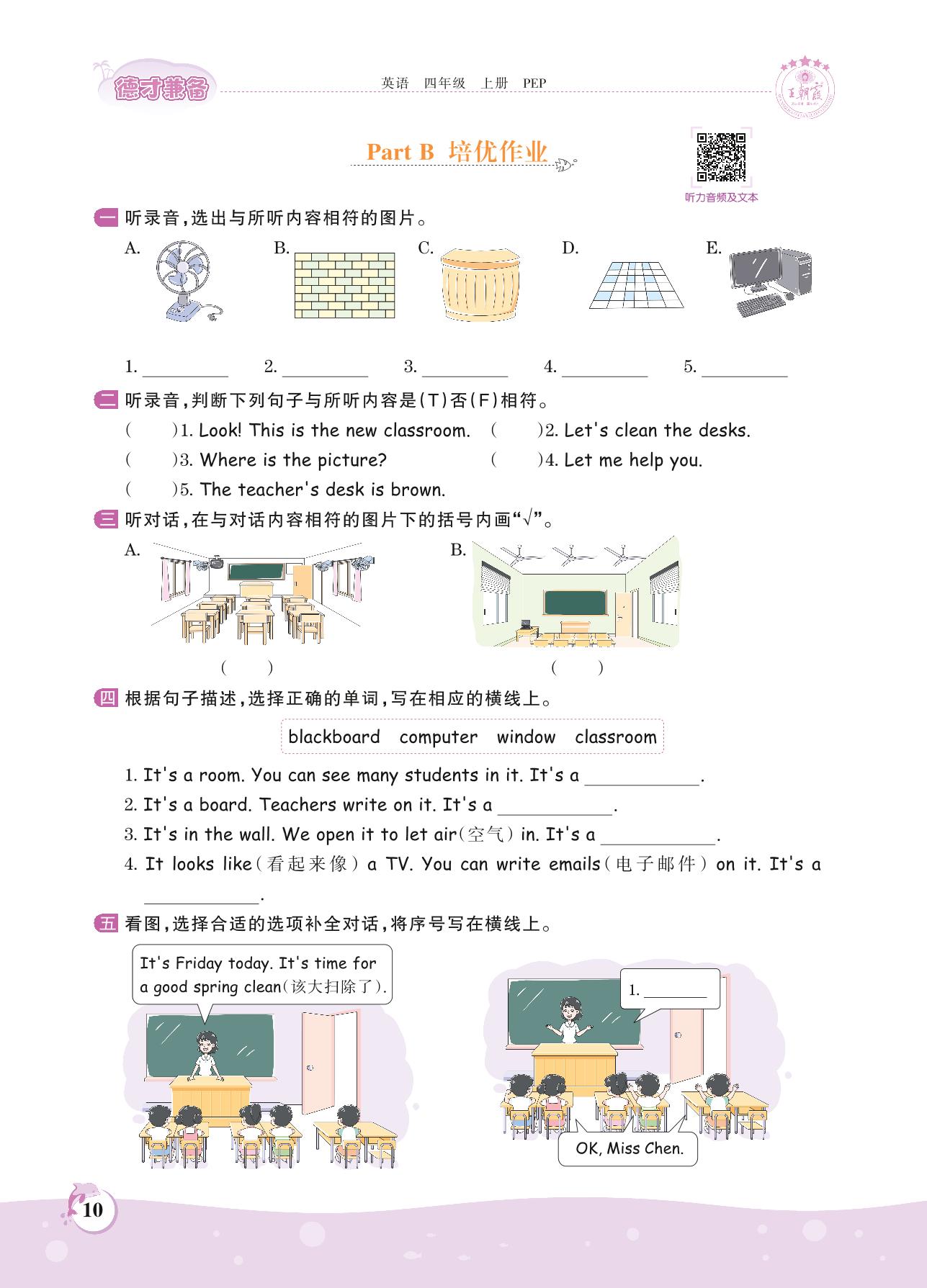 2021上册四年级英语人教PEP版 Unit 1 Part B 培优作业