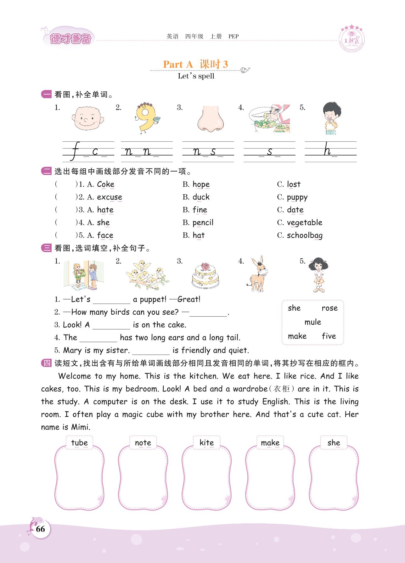2021上册四年级英语人教PEP版 Unit 6 Part A—课时 3 Let’s spell