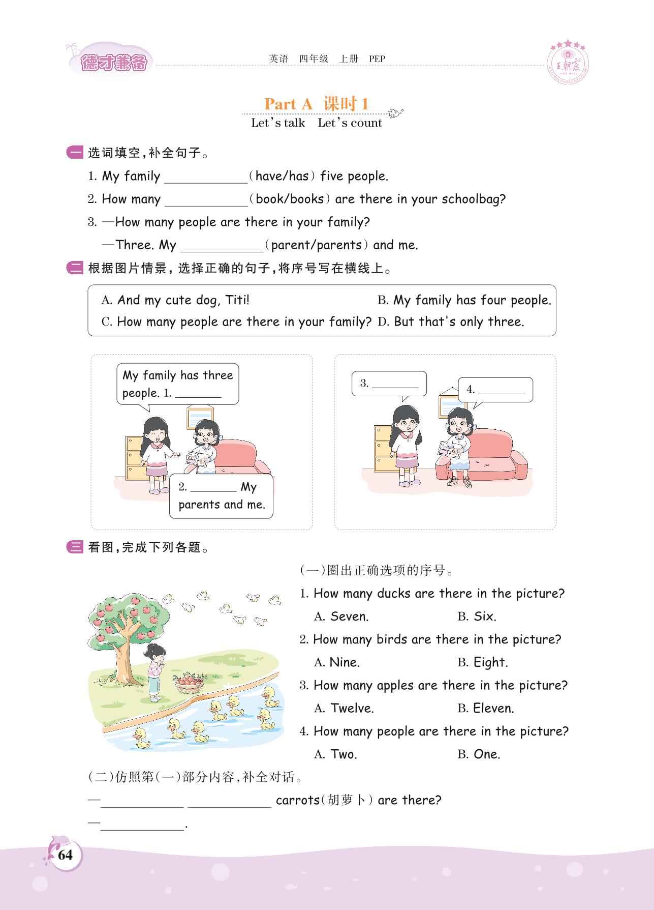 2021上册四年级英语人教PEP版 Unit 6 Part A—课时 1 Let’s talk Let’s count