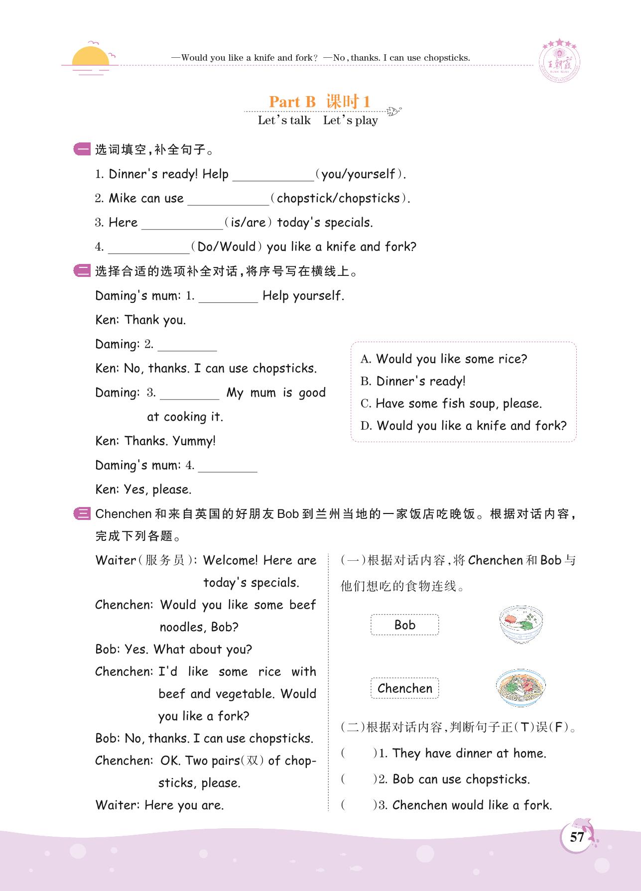 2021上册四年级英语人教PEP版 Unit 5 Part B—课时 1 Let’s talk Let’s play