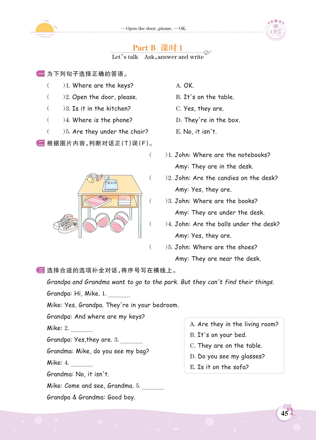 2021上册四年级英语人教PEP版 Unit 4 Part B—课时 1 Let’s talk Ask,answer and write