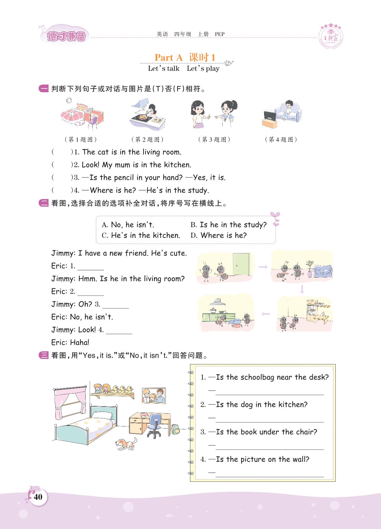 2021上册四年级英语人教PEP版 Unit 4 Part A—课时 1 Let’s talk Let’s play