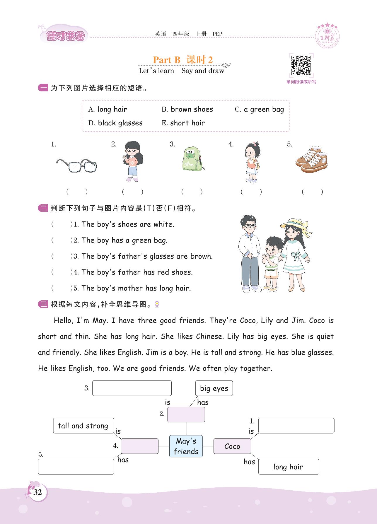 2021上册四年级英语人教PEP版 Unit 3 Part B—课时 2 Let’s learn Say and draw
