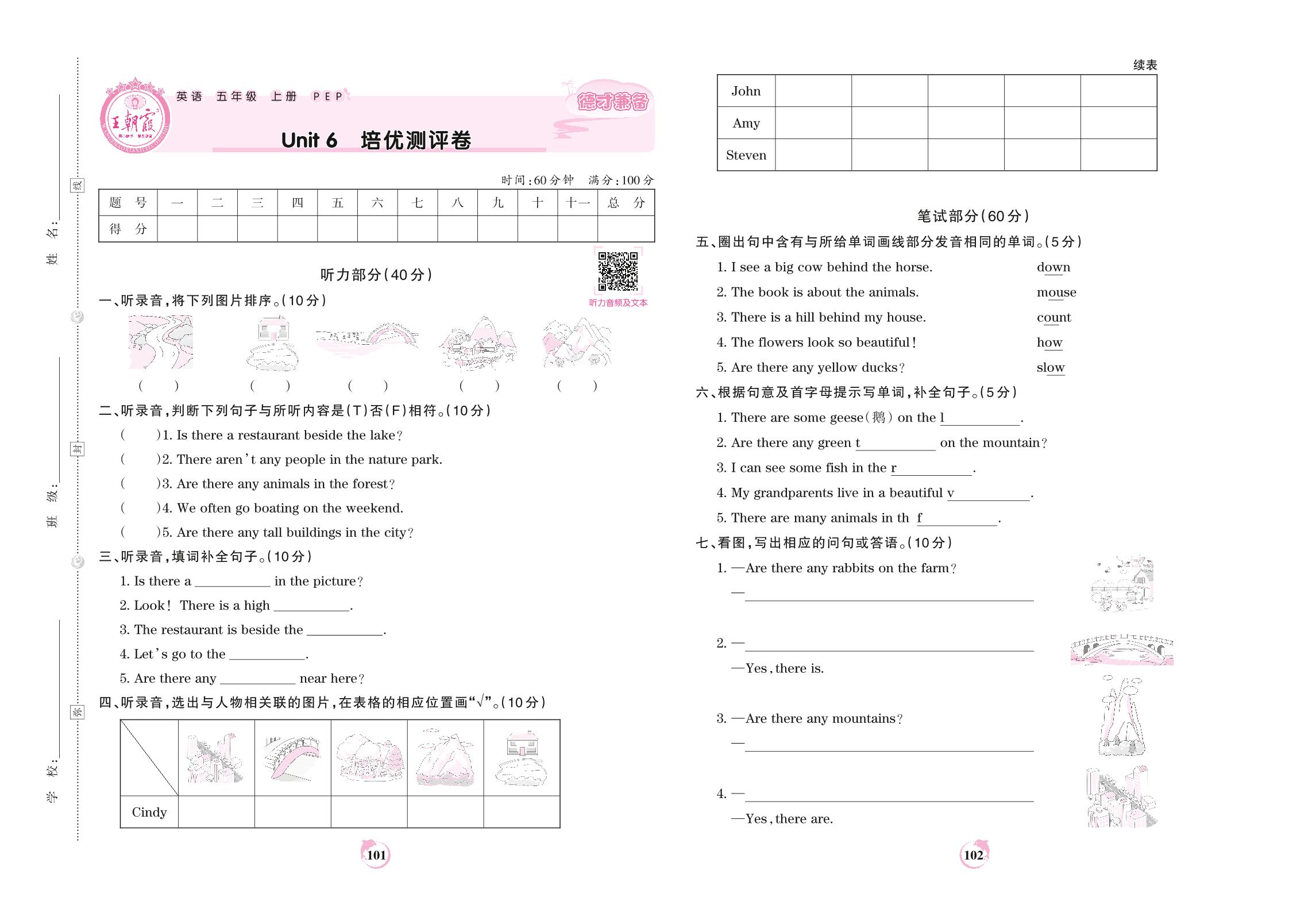 2021上册五年级英语人教PEP版 Unit 6 培优测评卷