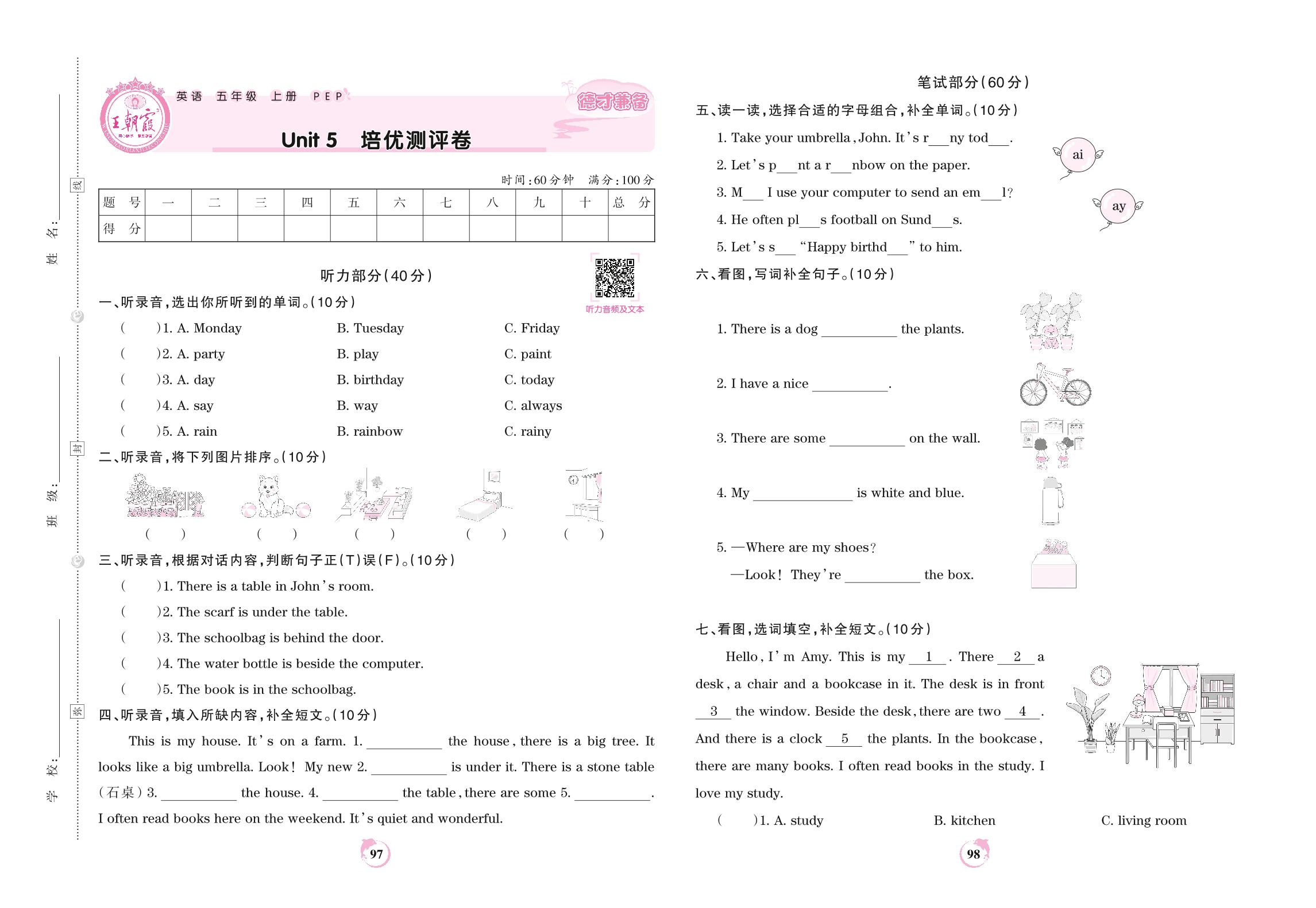 五年级英语人教PEP版(三起始)上册单元卷