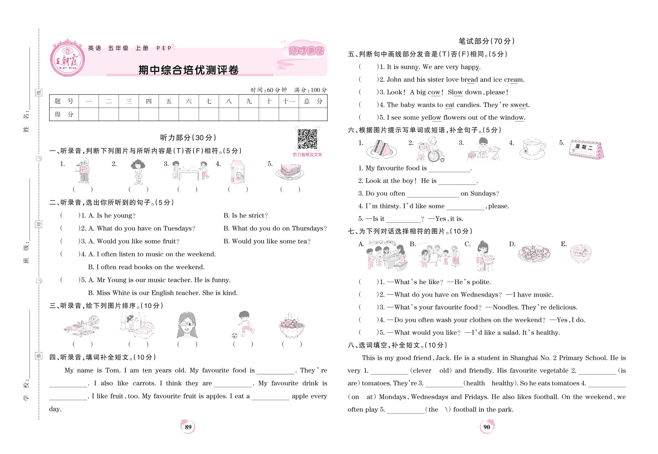 2021上册五年级英语人教PEP版 期中综合培优测评卷