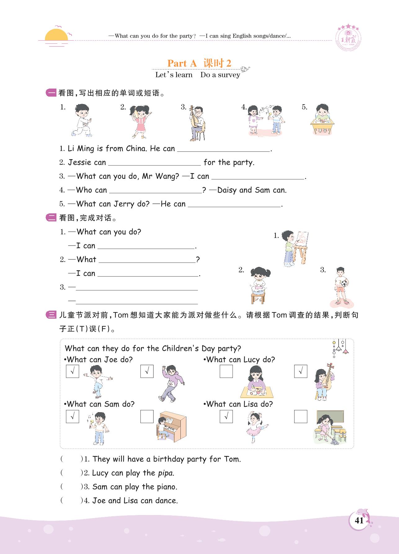 2021上册五年级英语人教PEP版 Unit 4 Part A—课时2 Let’s learn Do a survey