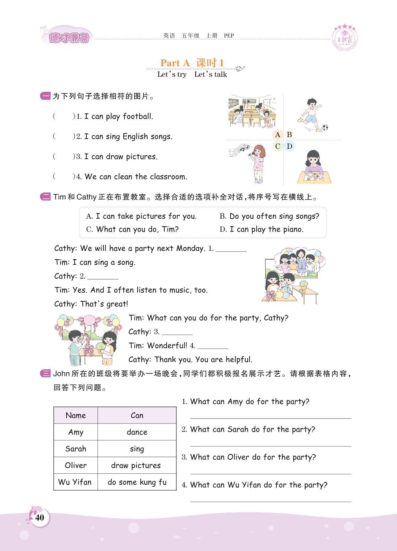 2021上册五年级英语人教PEP版 Unit 4 Part A—课时1 Let’s try Let’s talk