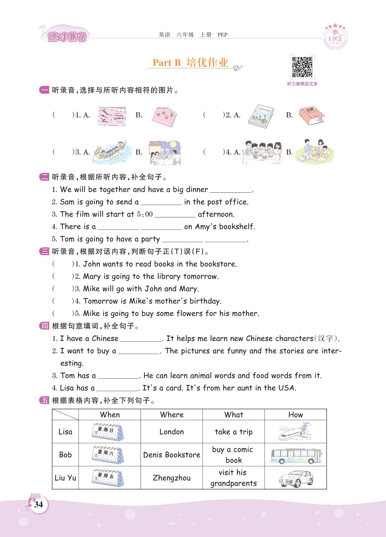 2021上册六年级英语人教PEP版 Unit 3 Part B 培优作业