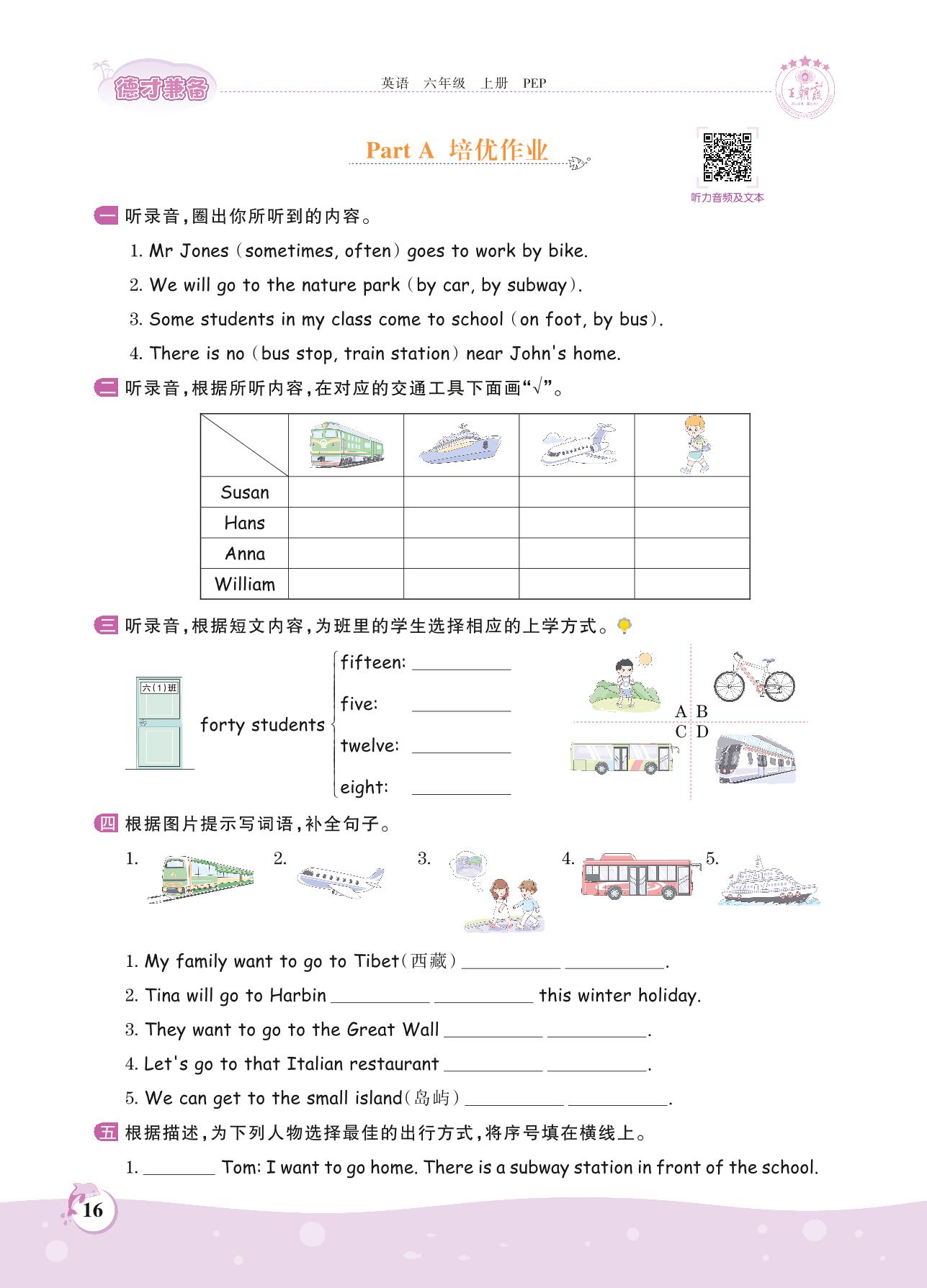 2021上册六年级英语人教PEP版 Unit 2 Part A 培优作业