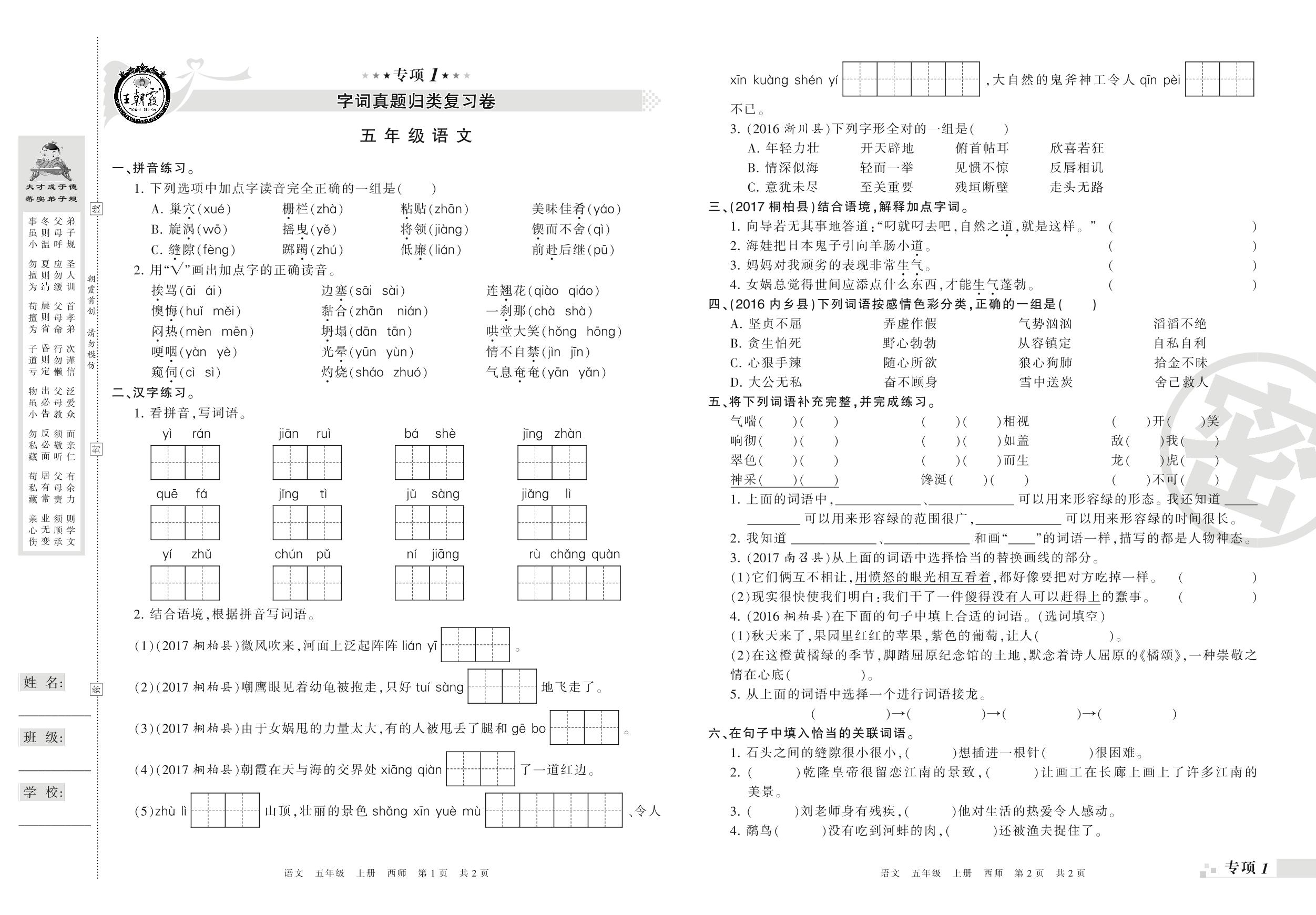 王朝霞期末专项卷——字词、句子真题归类复习五年级上册语文(西师版)【0】