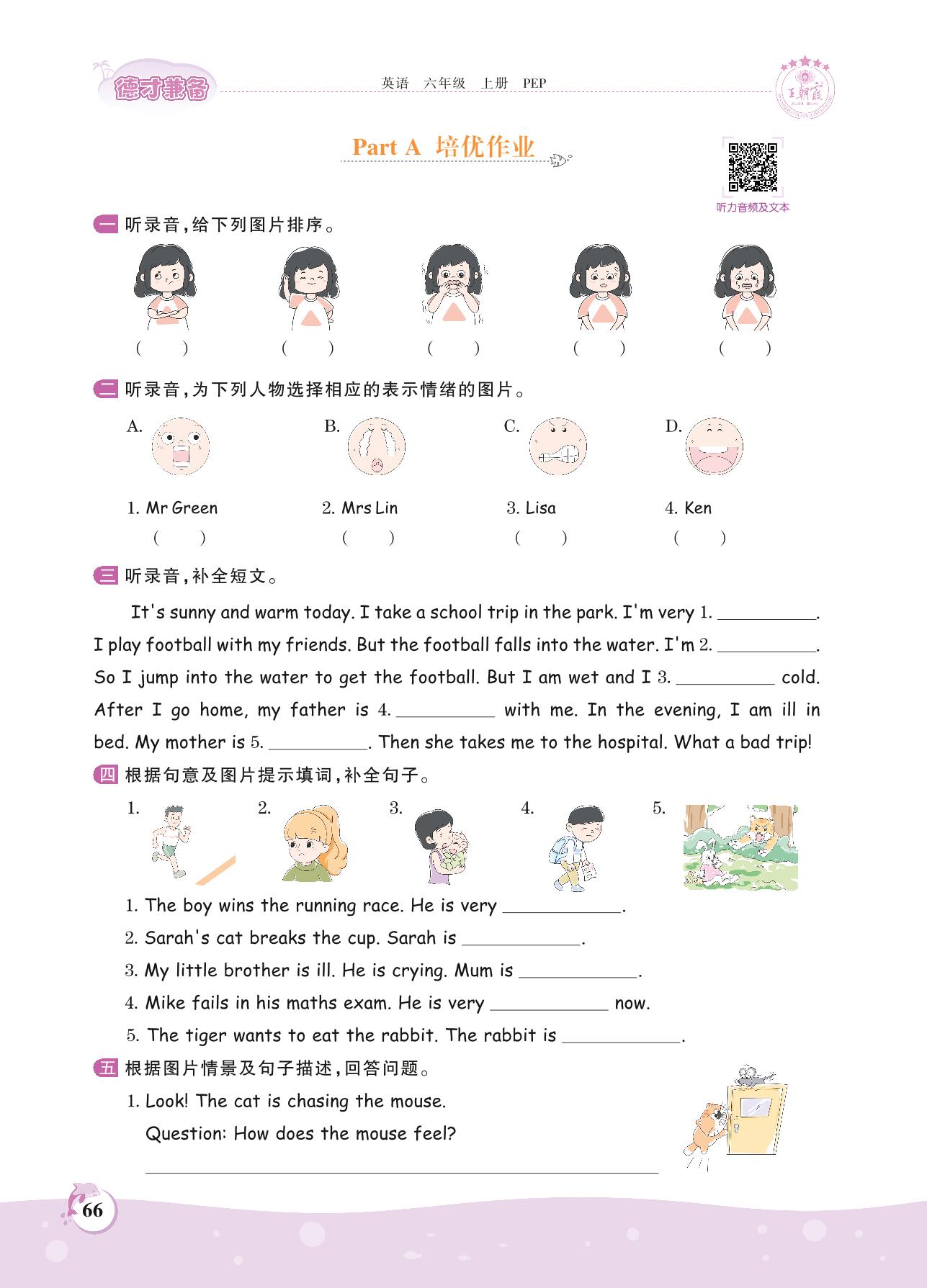 2021上册六年级英语人教PEP版 Unit 6 Part A 培优作业