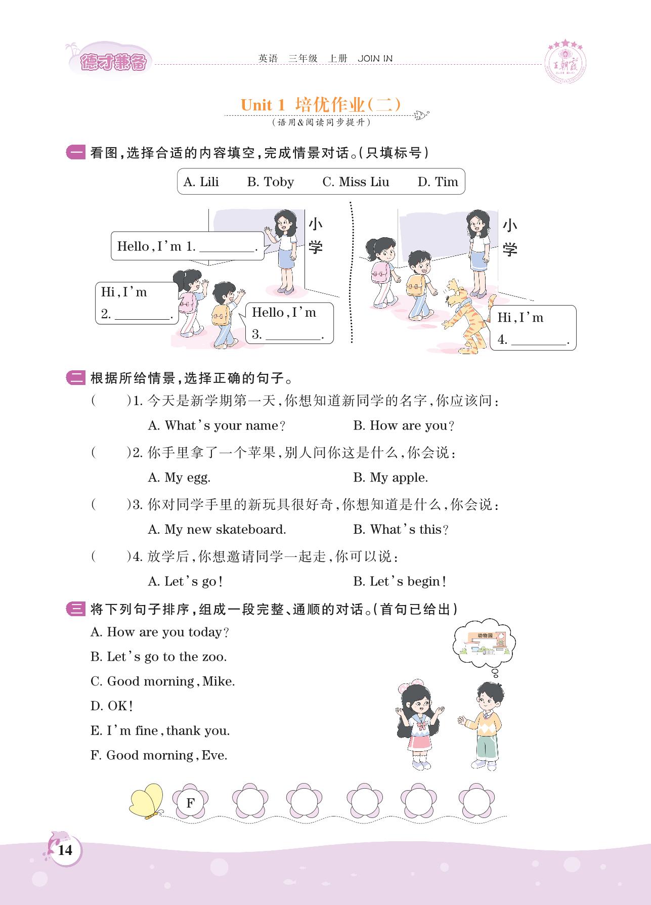 2021上册三年级英语剑桥版 Unit 1 培优作业(二)