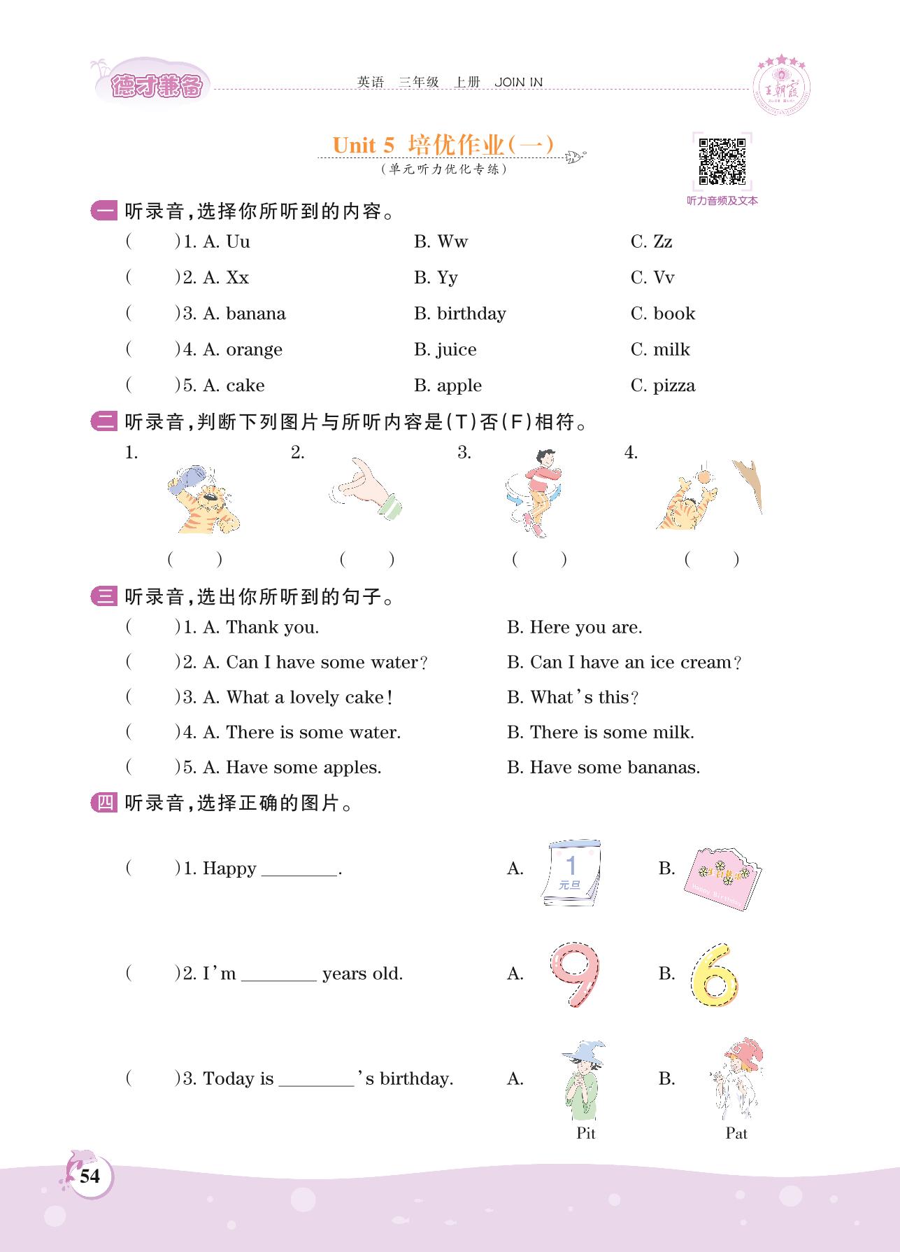 三年级英语剑桥版上册专项卷