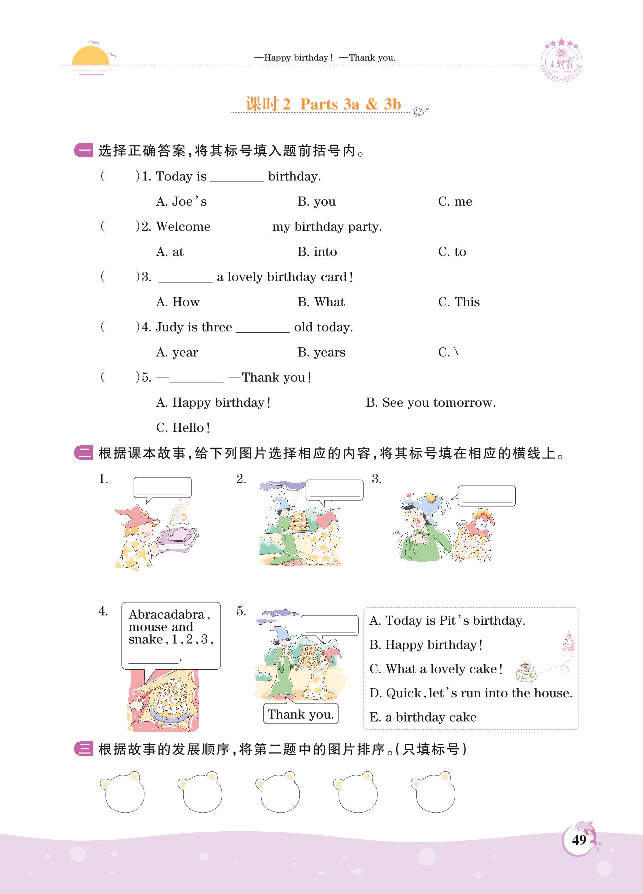 2021上册三年级英语剑桥版 Unit 5—课时2 Parts 3a & 3b