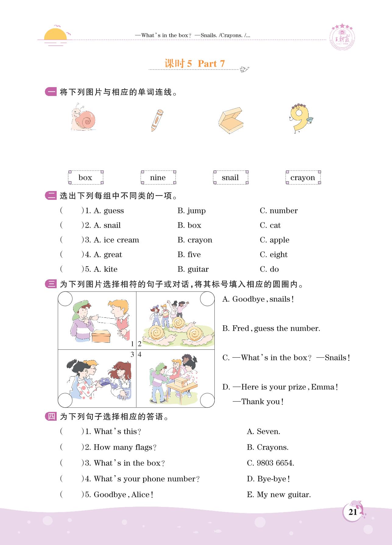 2021上册三年级英语剑桥版 Unit 2—课时5 Part 7