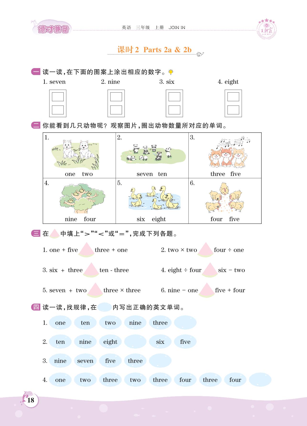 2021上册三年级英语剑桥版 Unit 2—课时2 Parts 2a & 2b