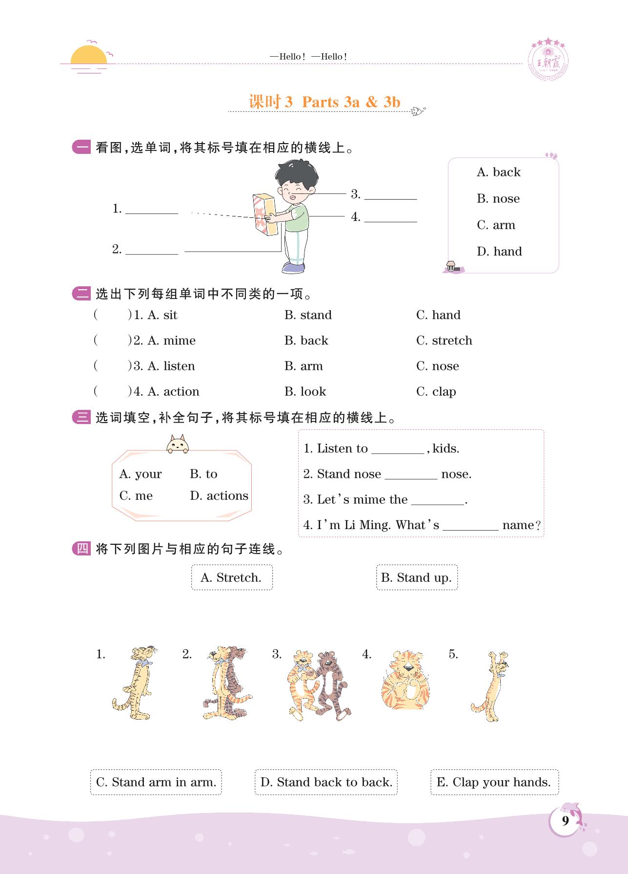 2021上册三年级英语剑桥版 Unit 1—课时3 Parts 3a & 3b