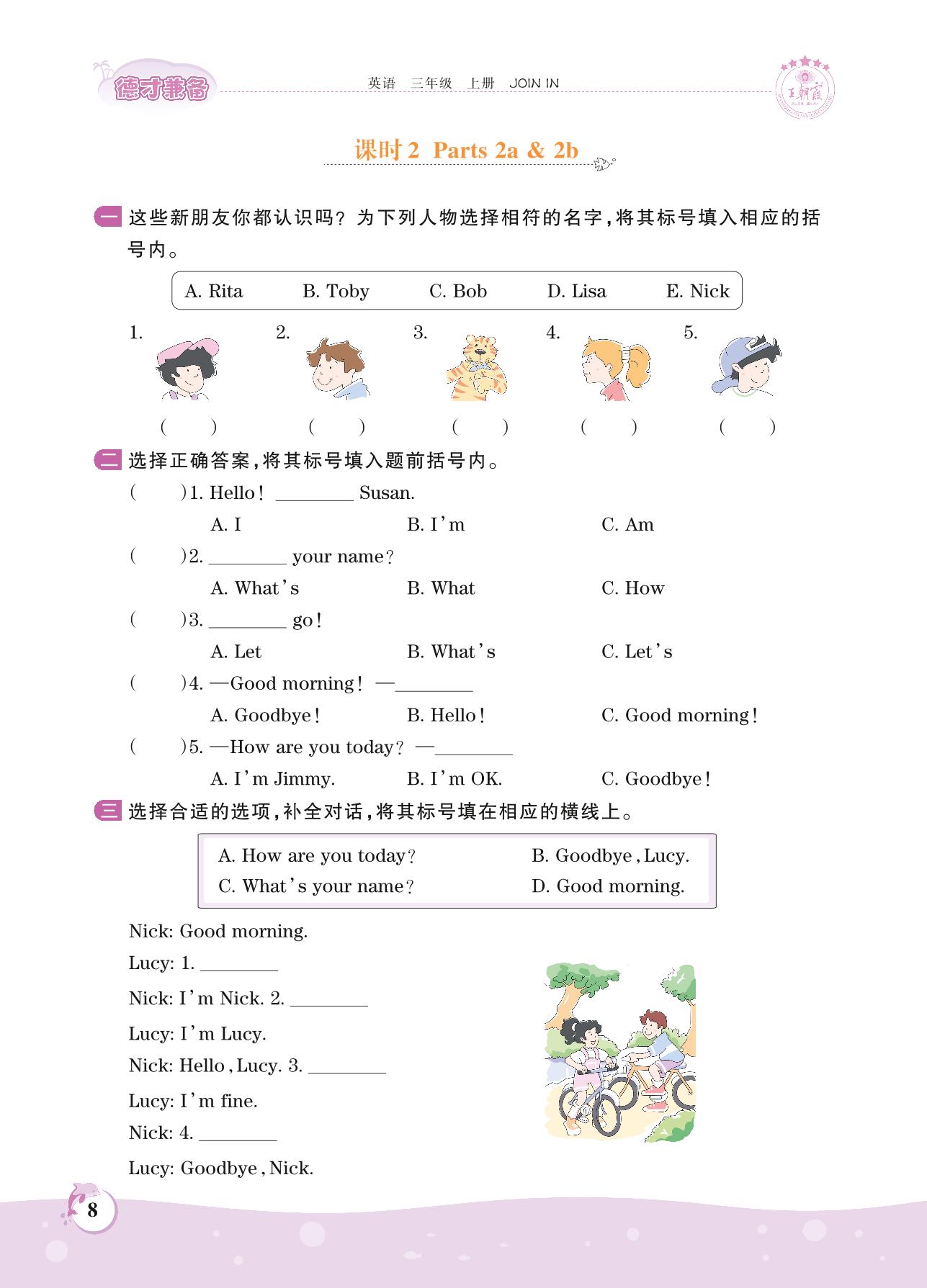 2021上册三年级英语剑桥版 Unit 1—课时2 Parts 2a & 2b