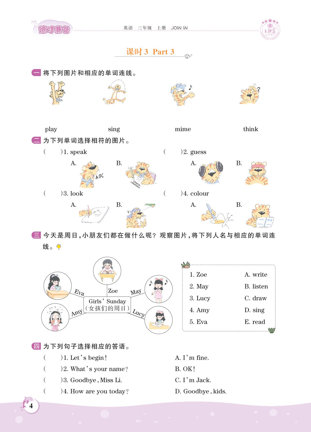 2021上册三年级英语剑桥版 Starter unit—课时3 Part 3