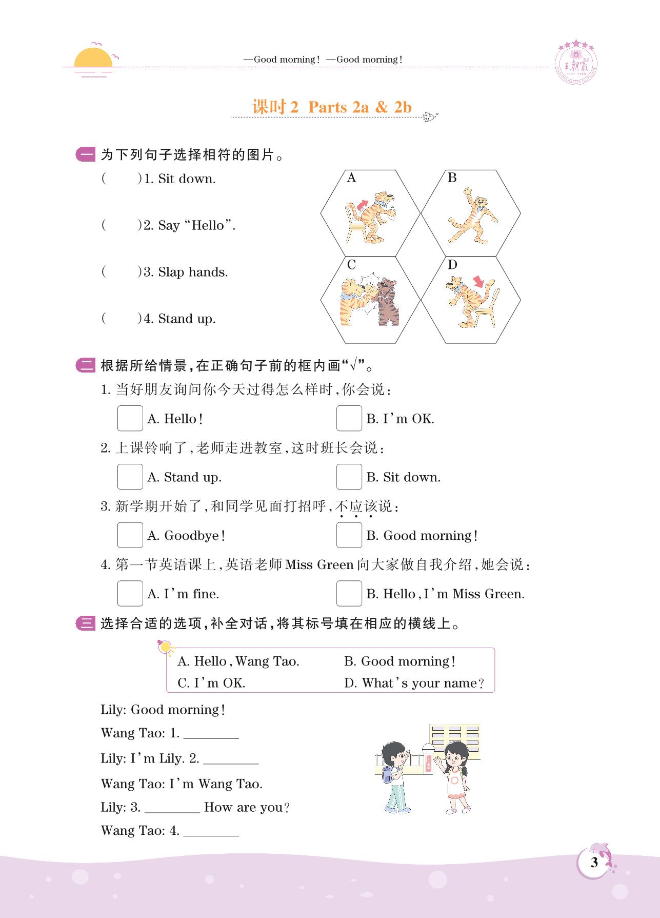 2021上册三年级英语剑桥版 Starter unit—课时2 Parts 2a & 2b