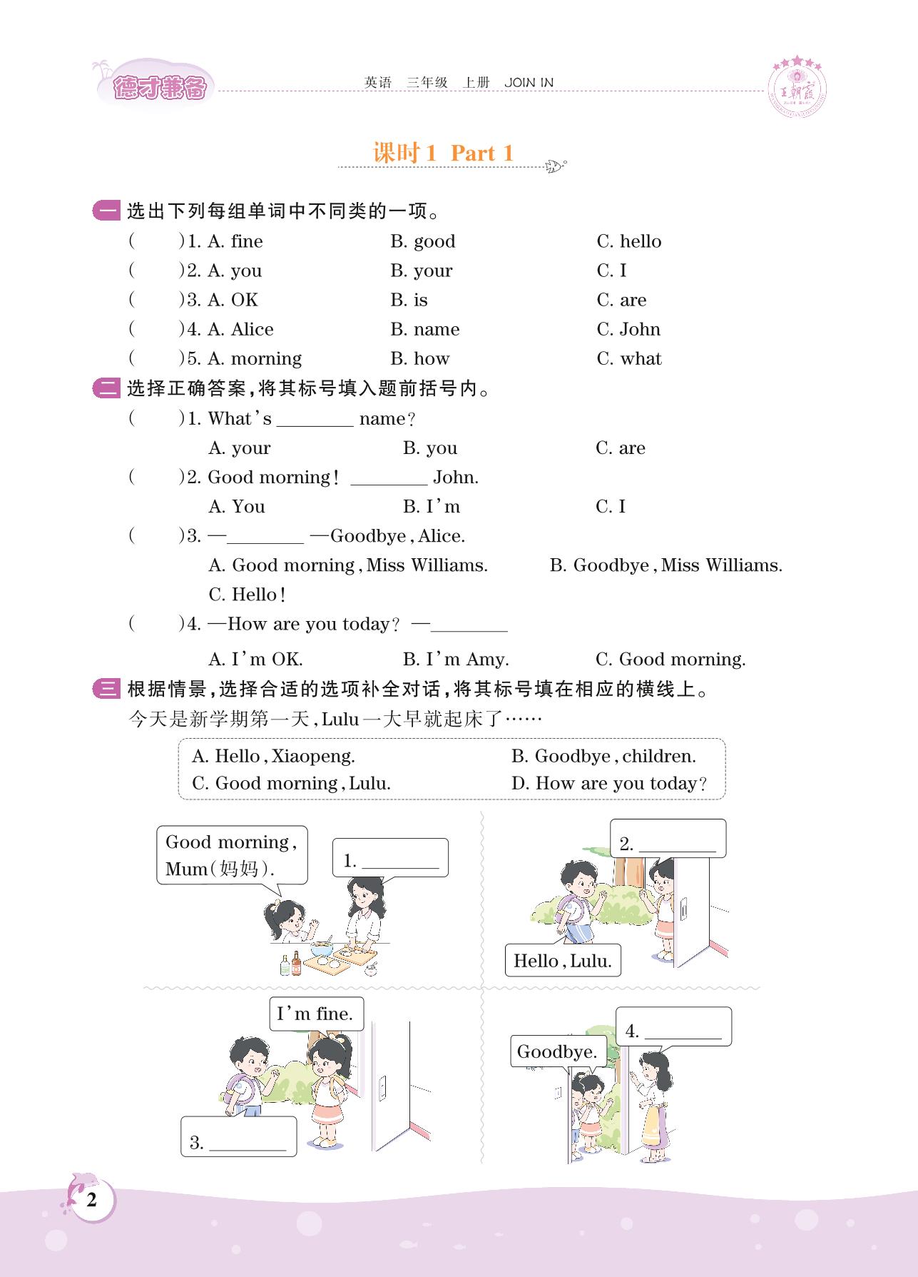 2021上册三年级英语剑桥版 Starter unit—课时1 Part 1