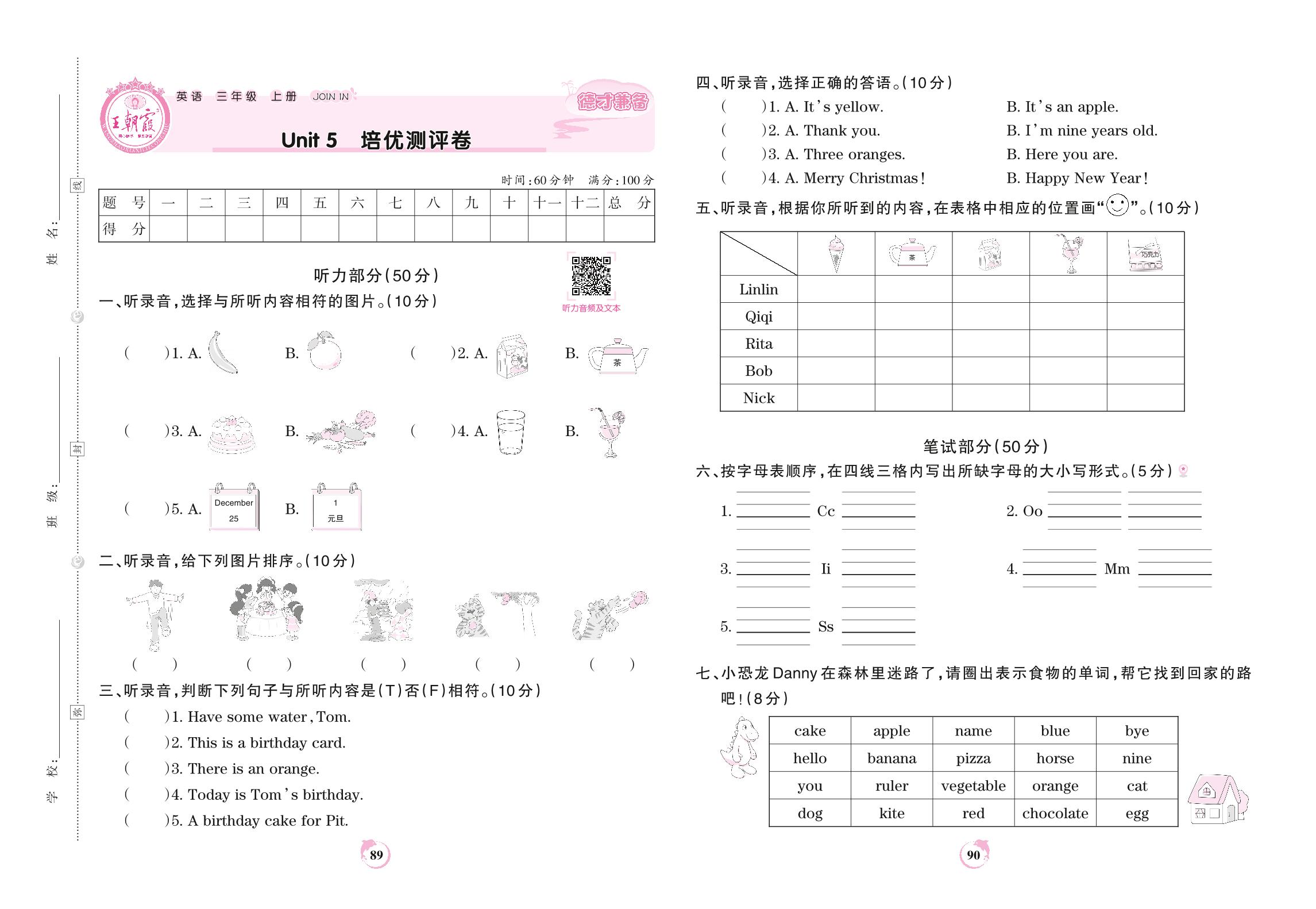 三年级英语剑桥版上册单元卷