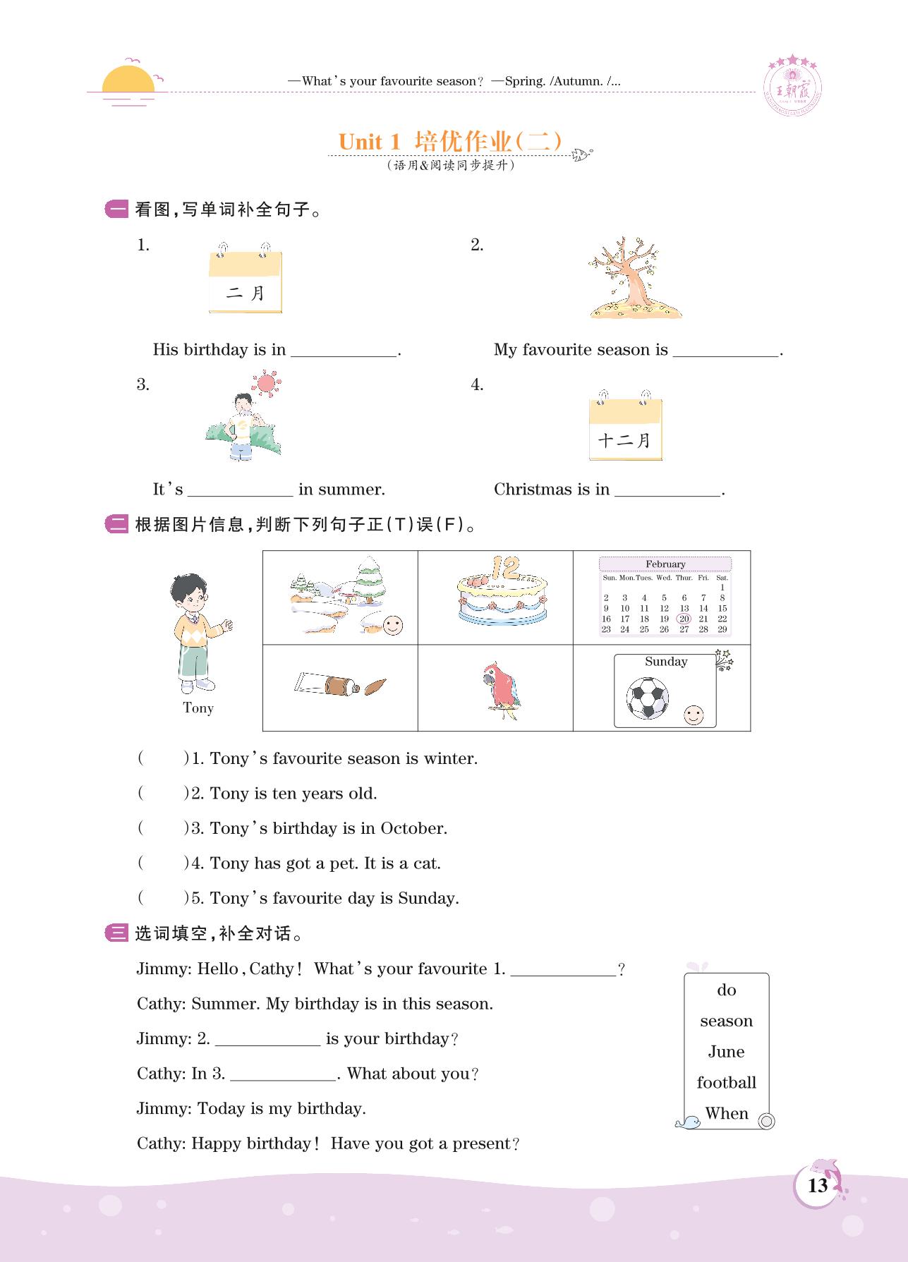 2021上册四年级英语剑桥版 Unit 1 培优作业(二)