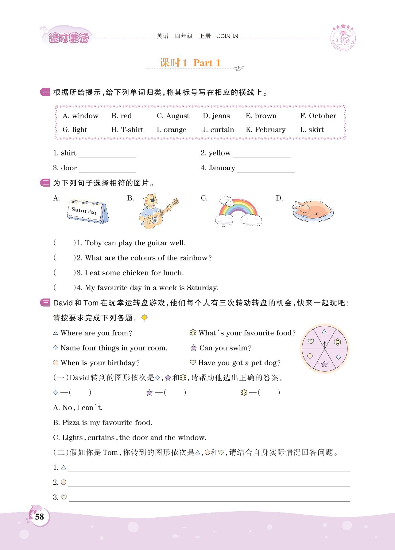 四年级英语剑桥版上册课时作业