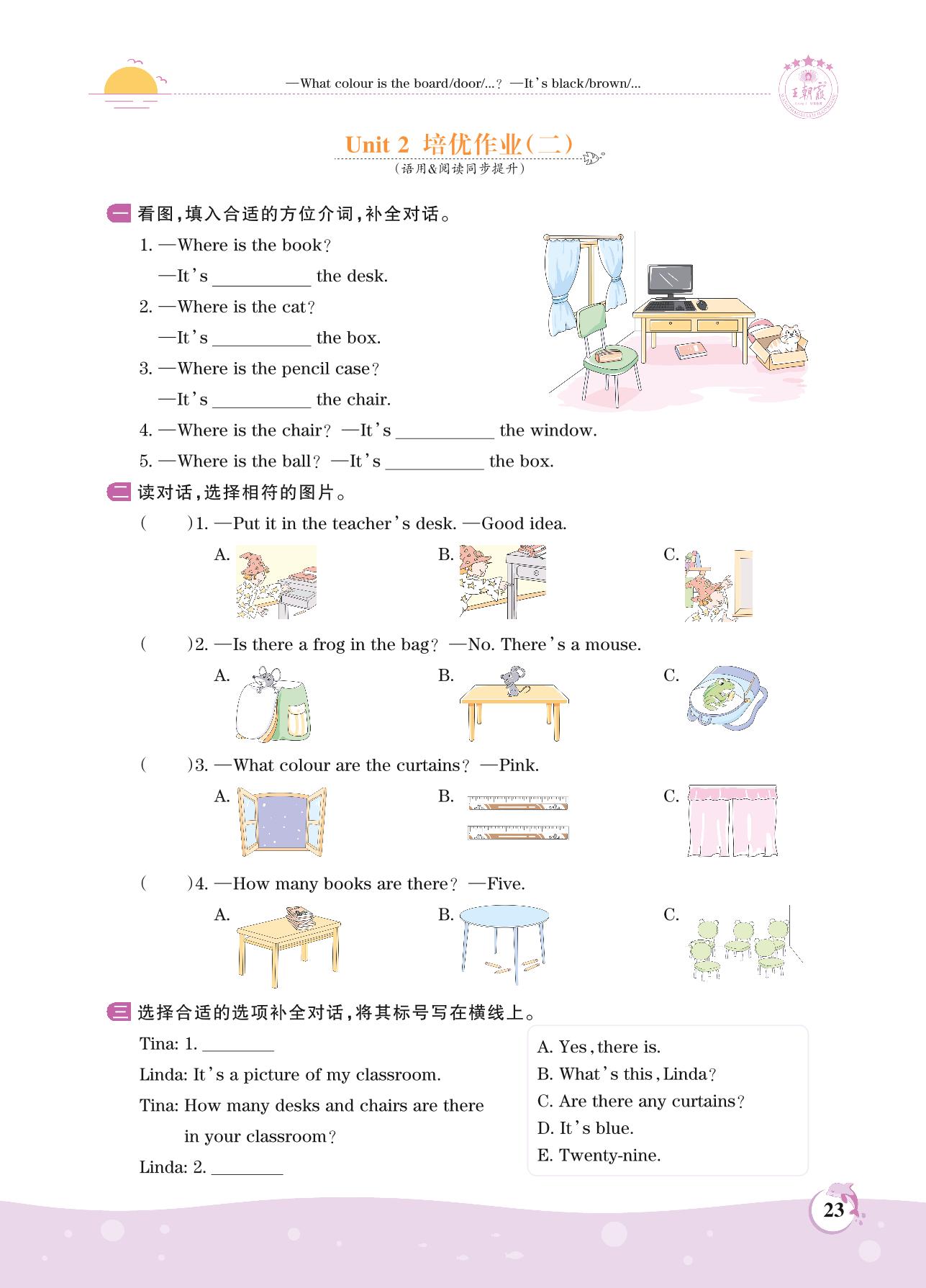 2021上册四年级英语剑桥版 Unit 2 培优作业(二)