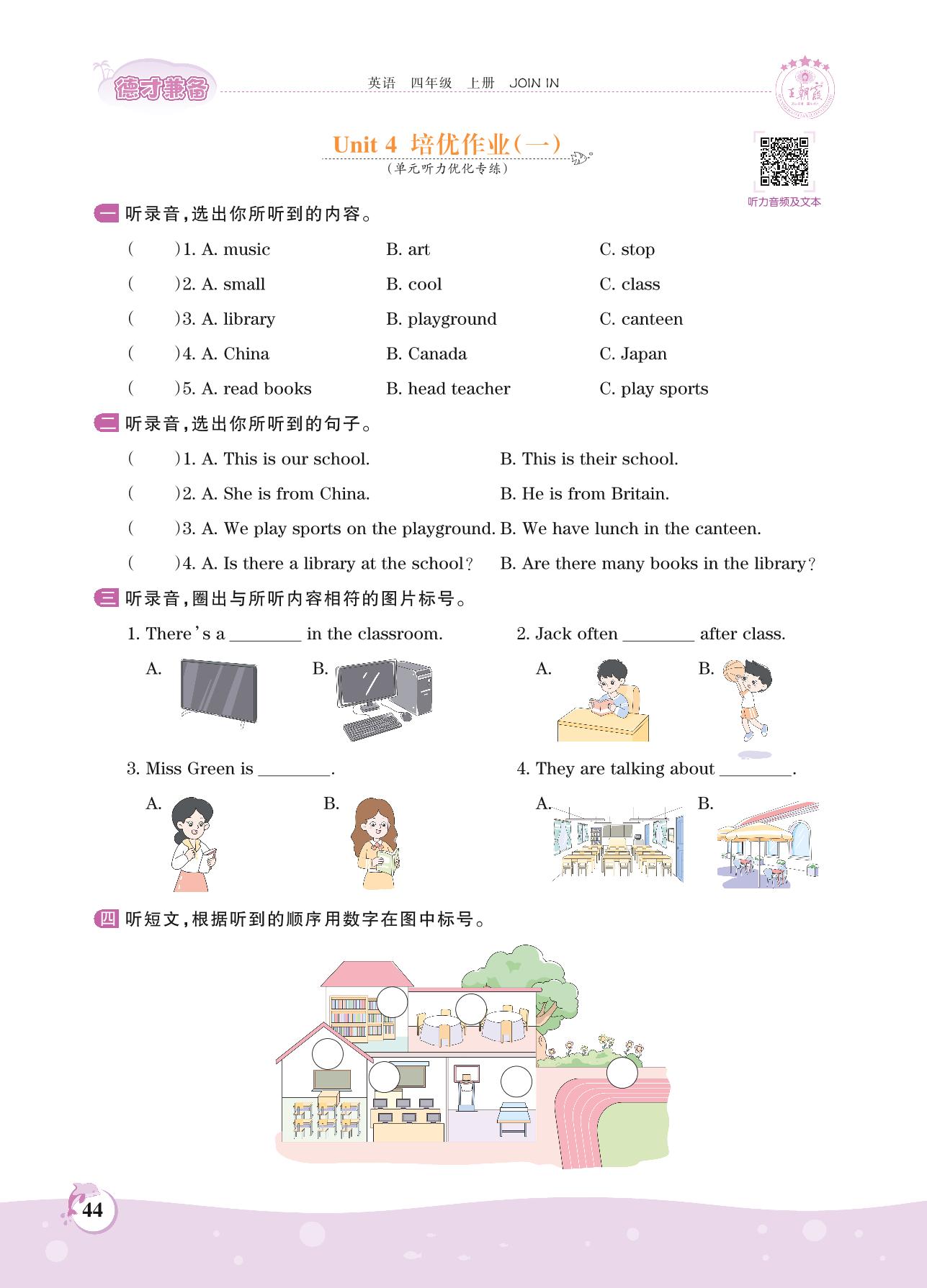 2021上册四年级英语剑桥版 Unit 4 培优作业(一)