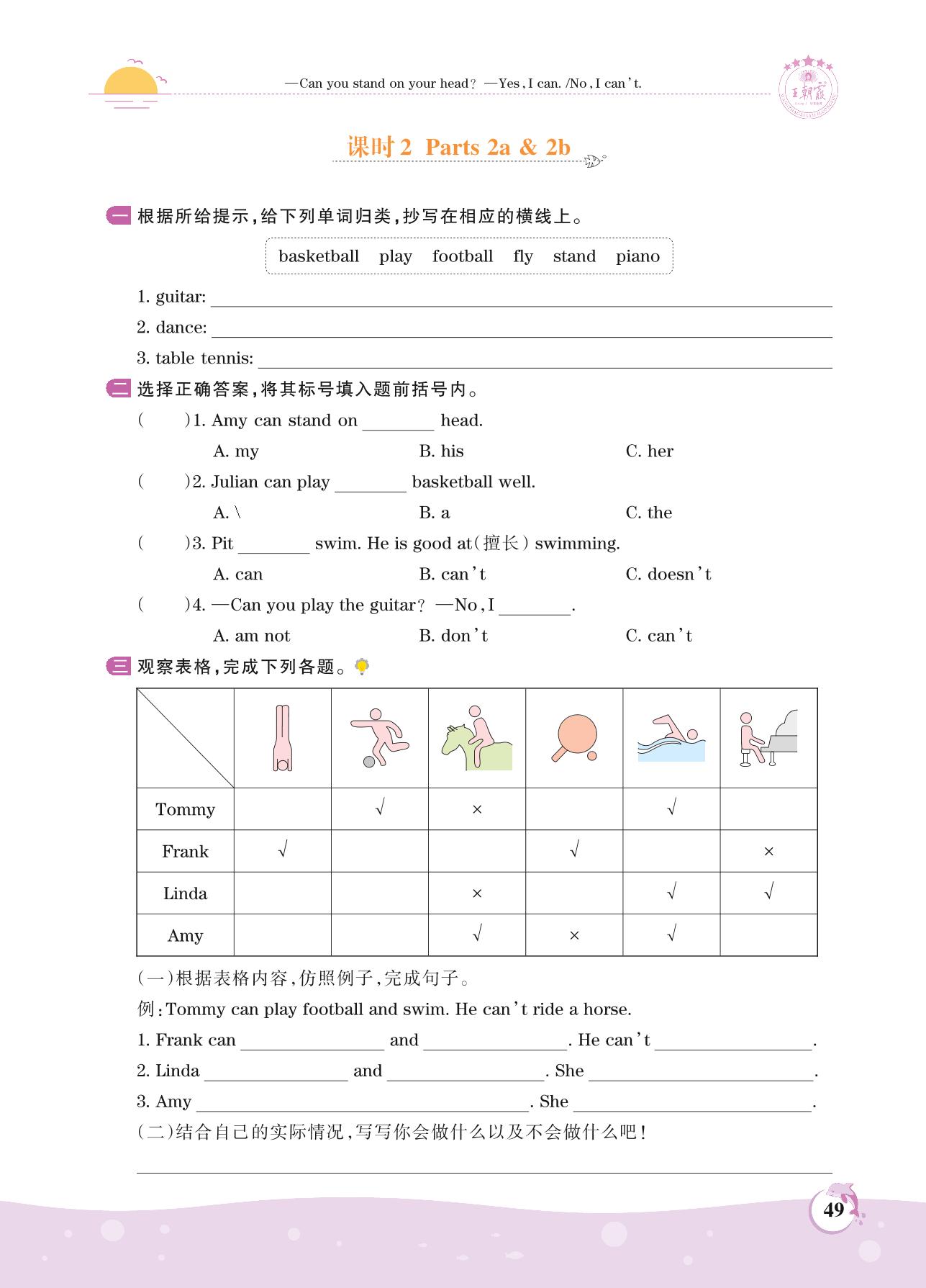 2021上册四年级英语剑桥版 Unit 5—课时2 Parts 2a & 2b
