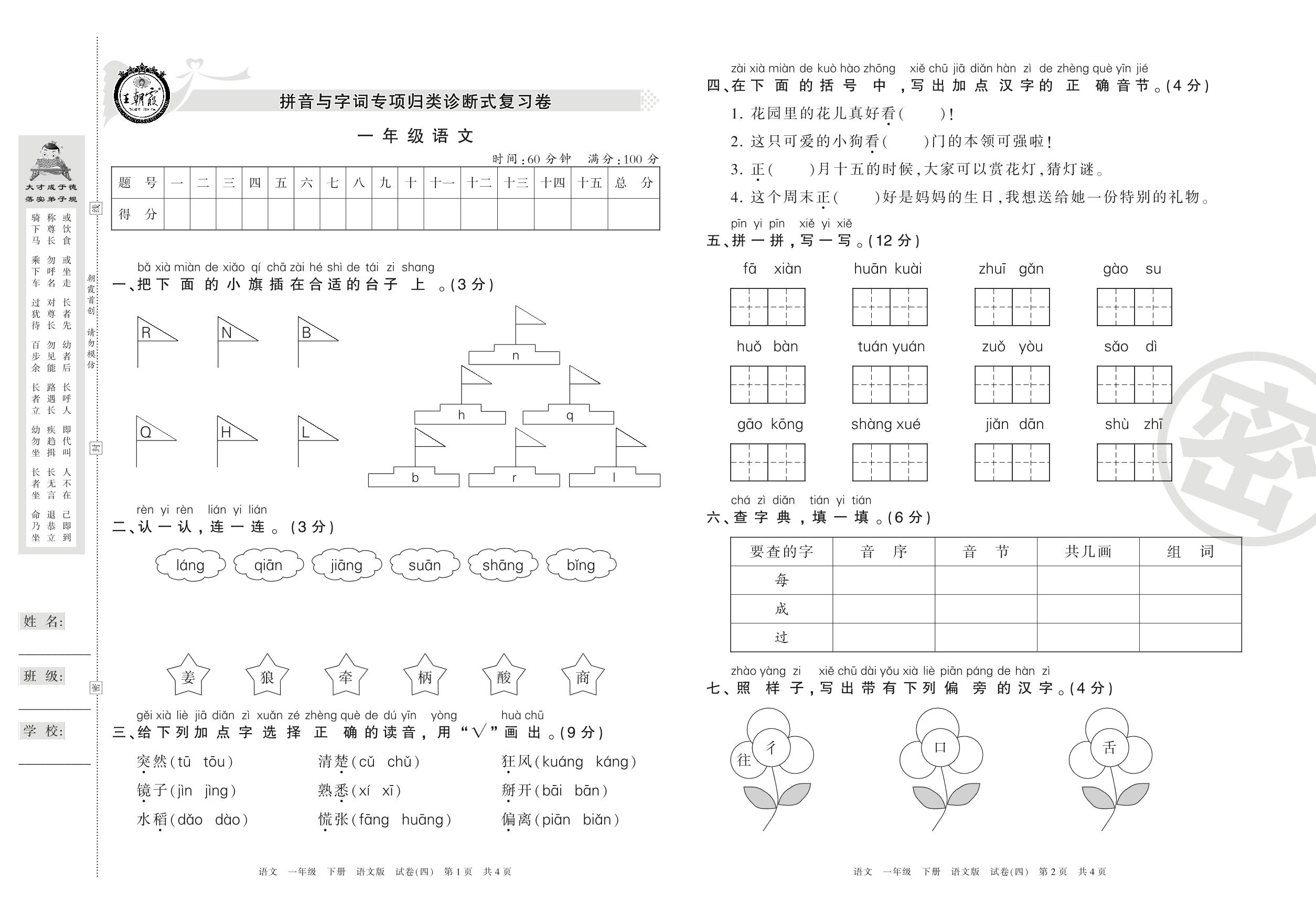 王朝霞期末专项卷一年级下册语文(语文版)_R210731182438【4】