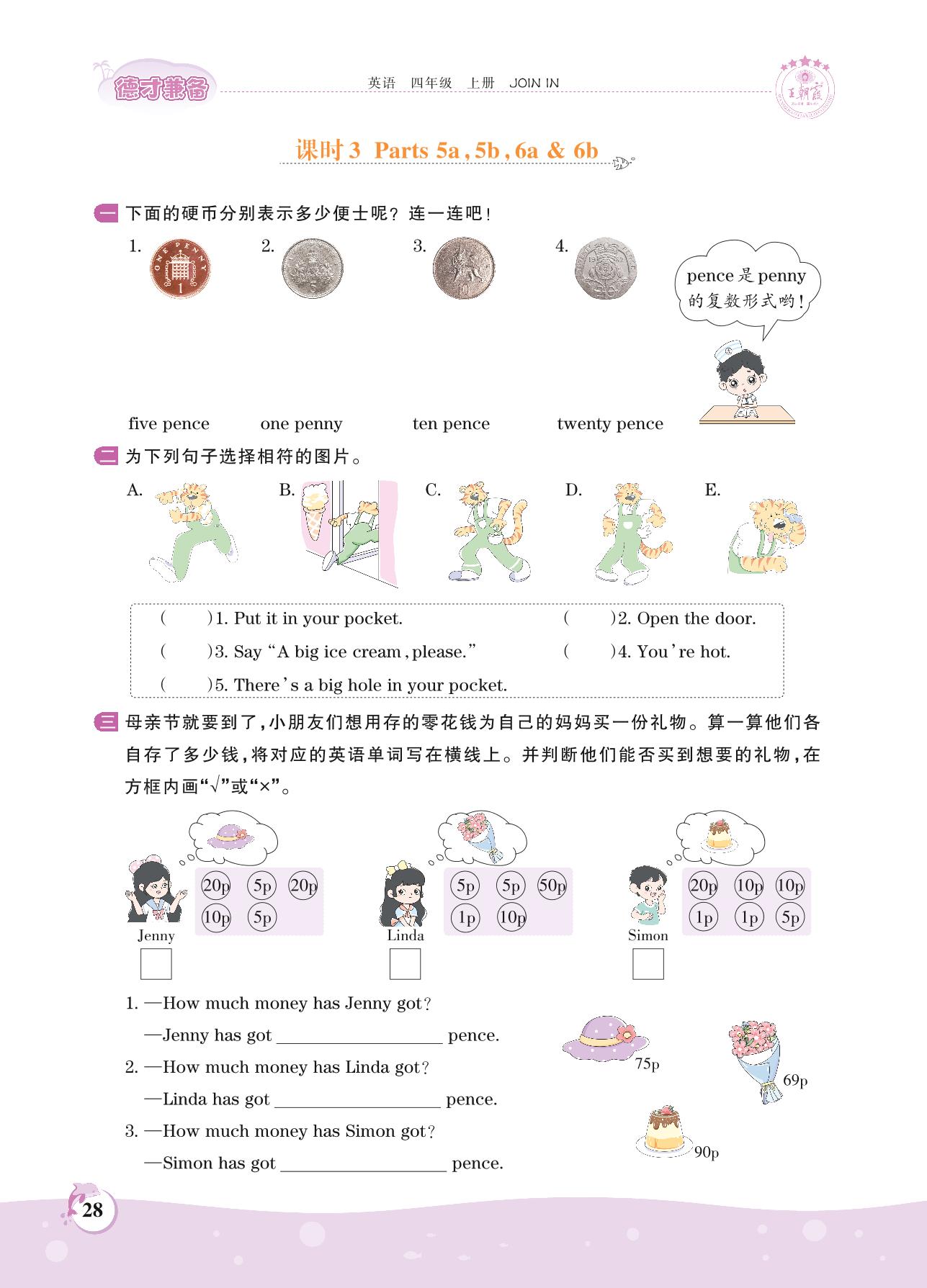 2021上册四年级英语剑桥版 Unit 3—课时3 Parts 5a,5b,6a & 6b