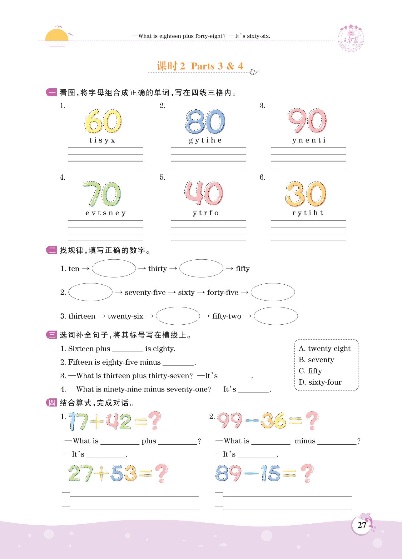 2021上册四年级英语剑桥版 Unit 3—课时2 Parts 3 & 4