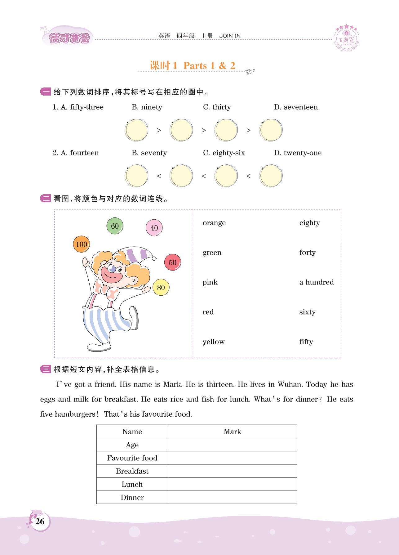 2021上册四年级英语剑桥版 Unit 3—课时1 Parts 1 & 2