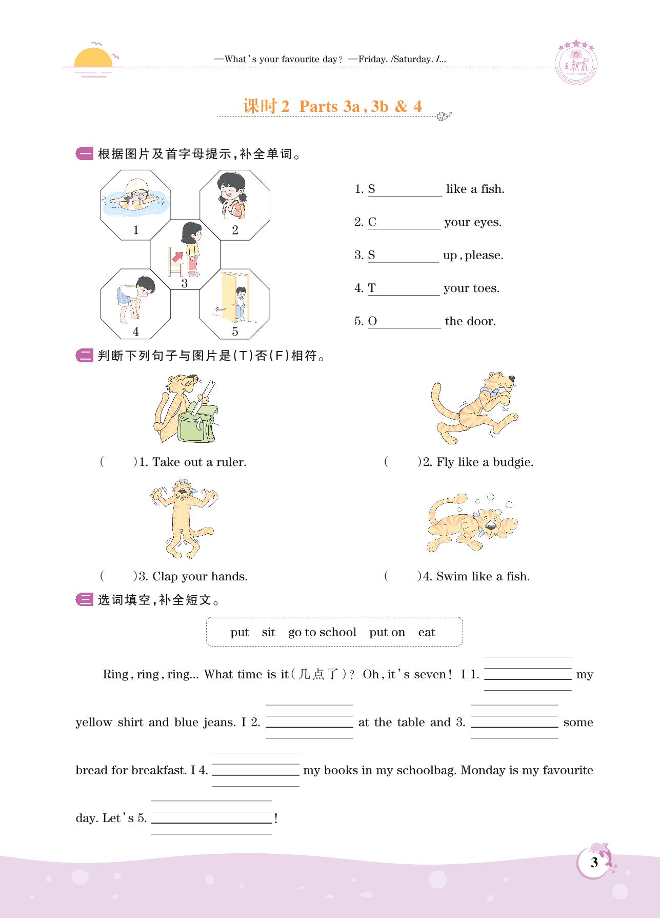 2021上册四年级英语剑桥版 Starter unit—课时2 Parts 3a,3b & 4