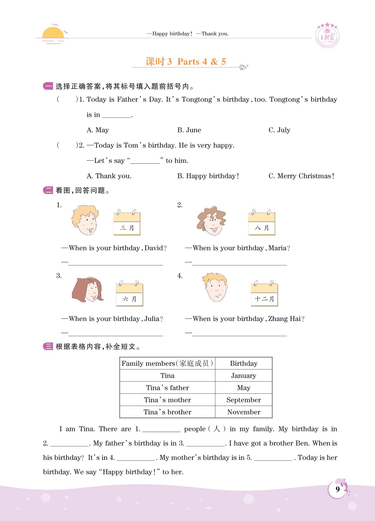 2021上册四年级英语剑桥版 Unit 1 —课时3 Parts 4 & 5