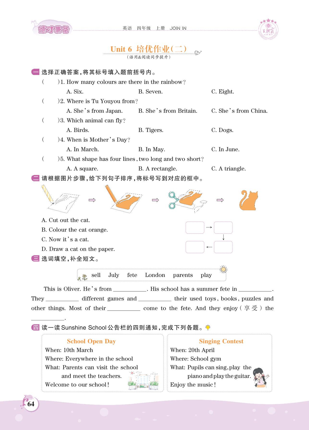 2021上册四年级英语剑桥版 Unit 6 培优作业(二)