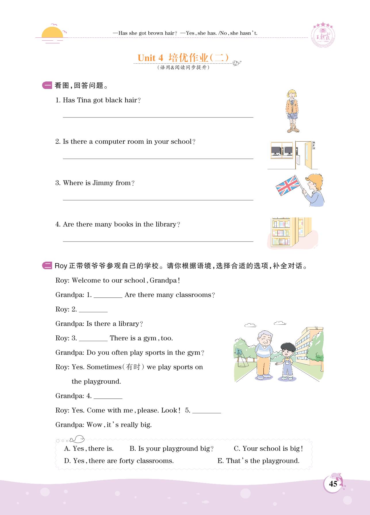 2021上册四年级英语剑桥版 Unit 4 培优作业(二)