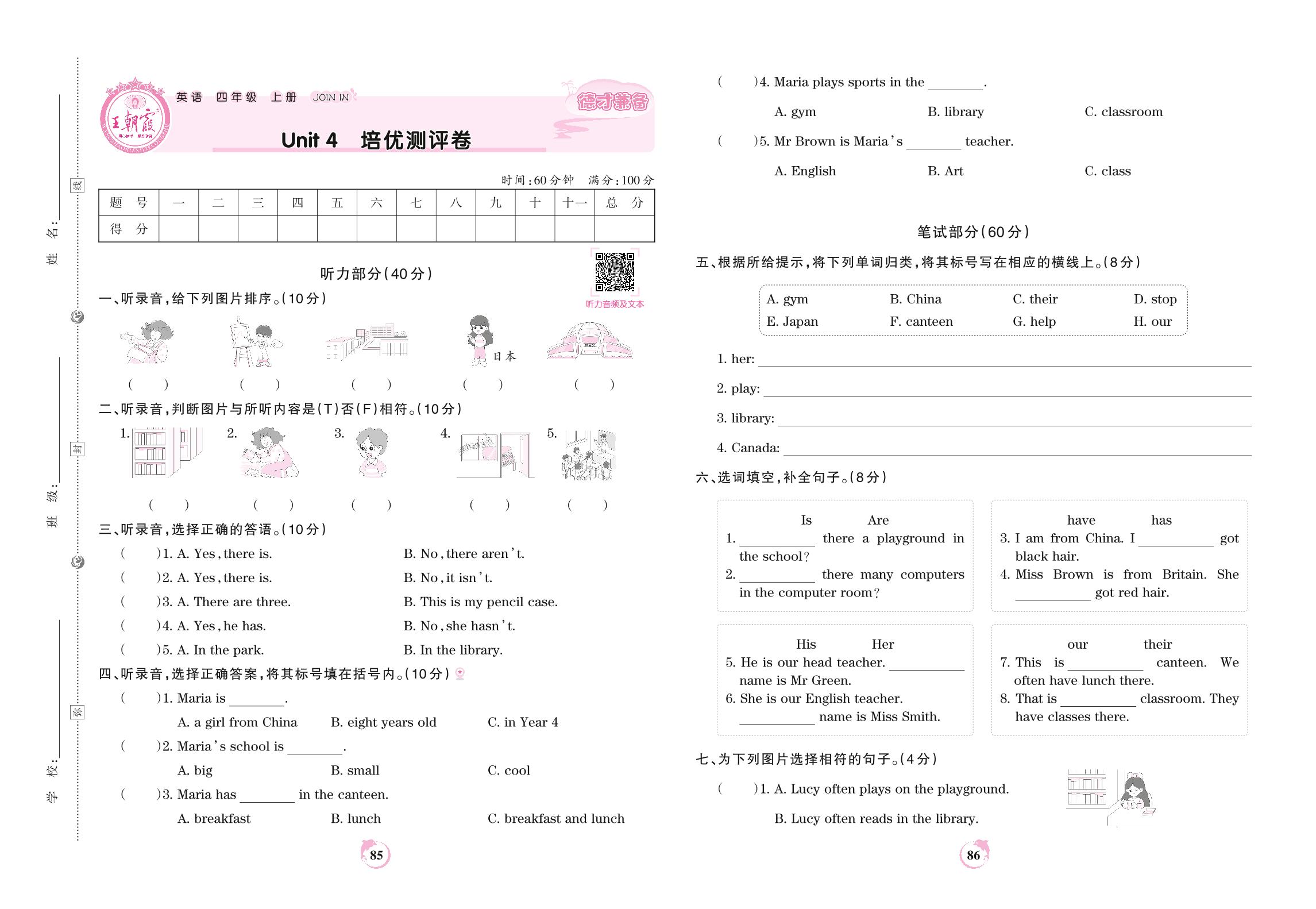 四年级英语剑桥版上册单元卷