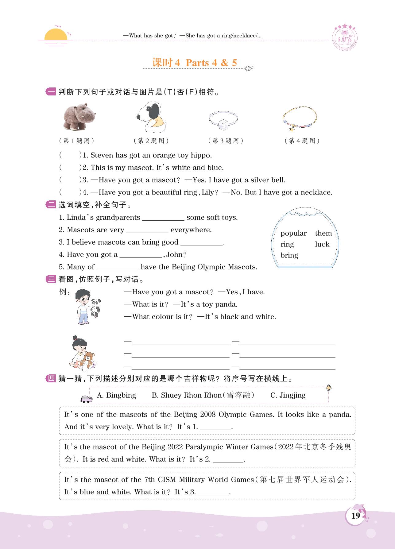2021上册五年级英语剑桥版 Unit 2—课时4 Parts 4 & 5