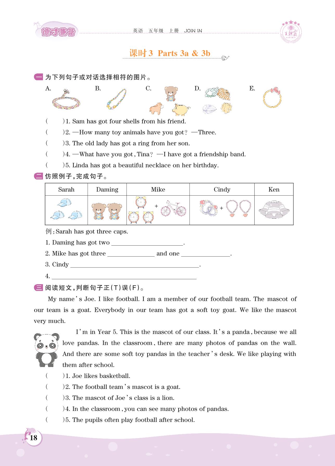 2021上册五年级英语剑桥版 Unit 2—课时3 Parts 3a & 3b