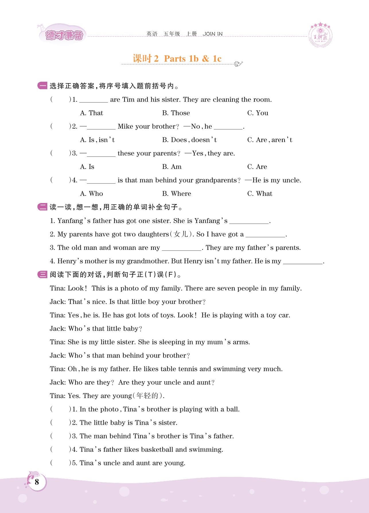 2021上册五年级英语剑桥版 Unit 1 —课时2 Parts 1b & 1c