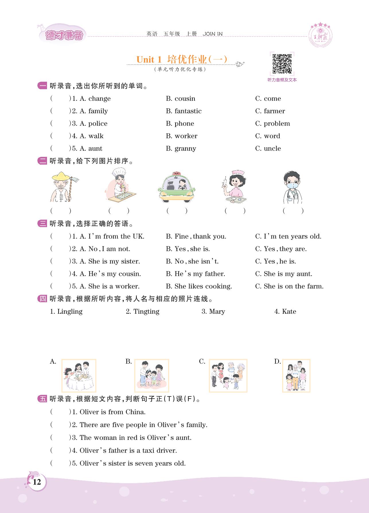 2021上册五年级英语剑桥版 Unit 1 培优作业(一)